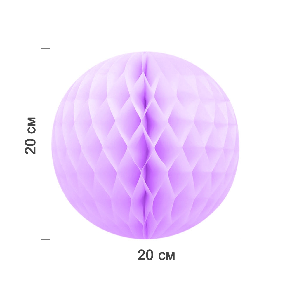 Бумажное украшение шар 20 см светло-сиреневый