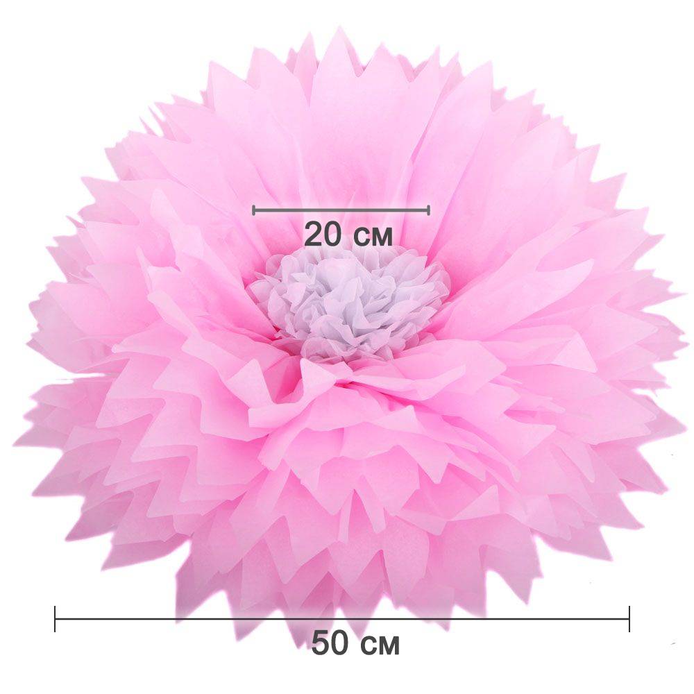 Бумажный цветок 50 см розовый+белый