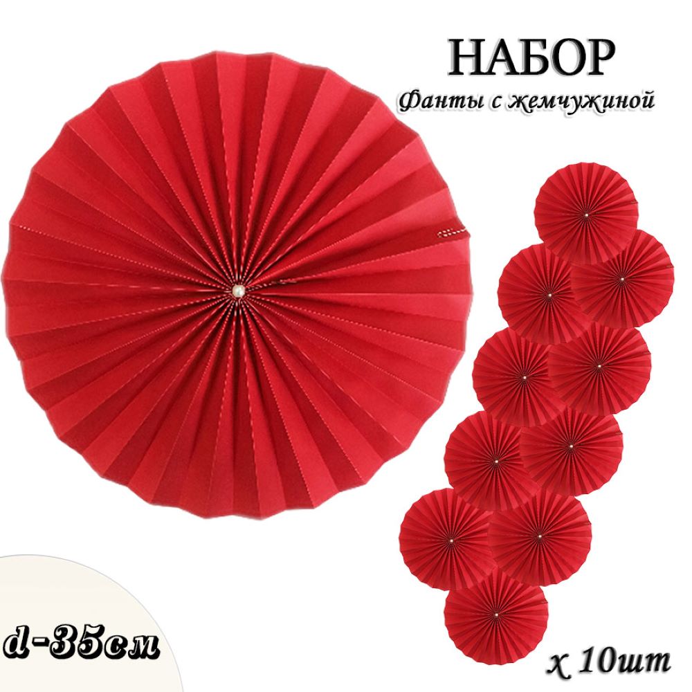 Фанты с жемчужиной НАБОР 10шт х 35см, красный