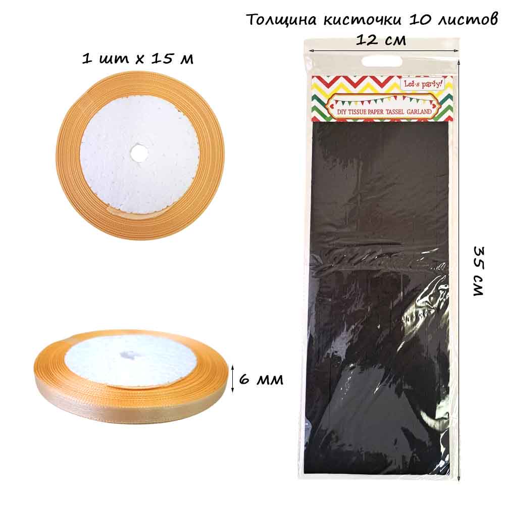 Гирлянда тассел 12 кисточек по 5 листов, черный