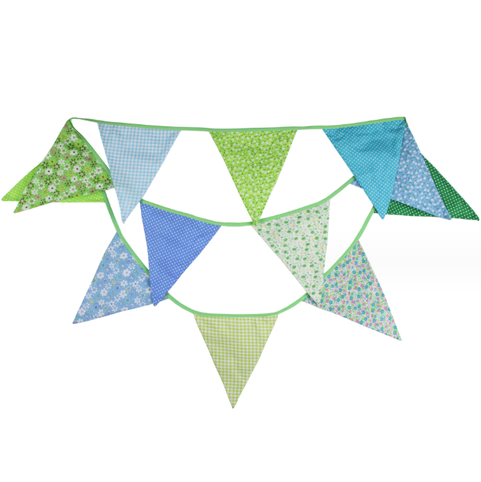 Гирлянда состоит из 12 флажков, расстояние между флажками 6 см, общая длина составляет 4 м.