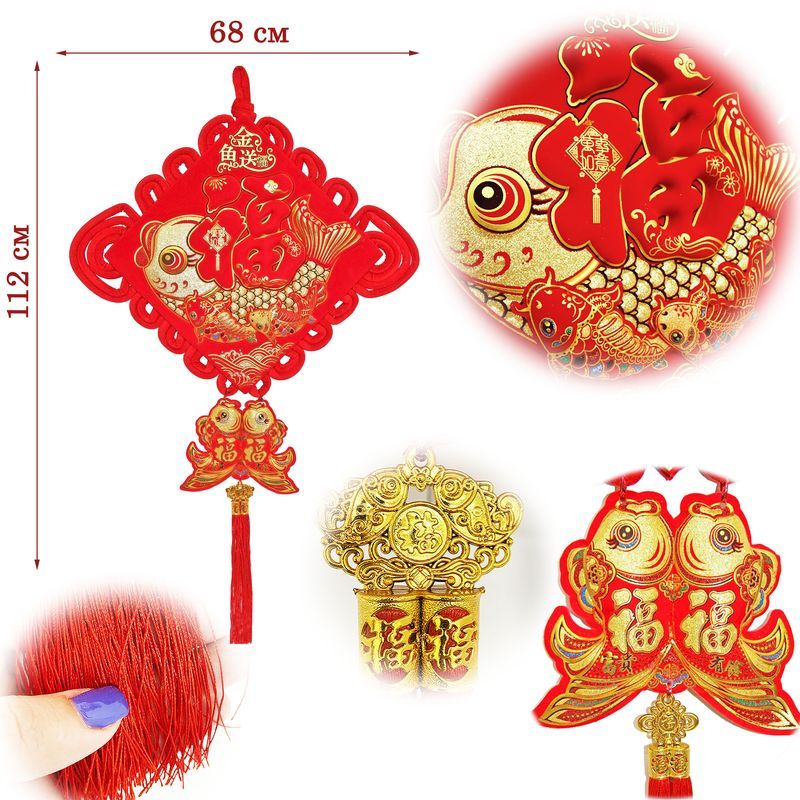Китайский узел ромб красный рыбки 68х112см, Достаток