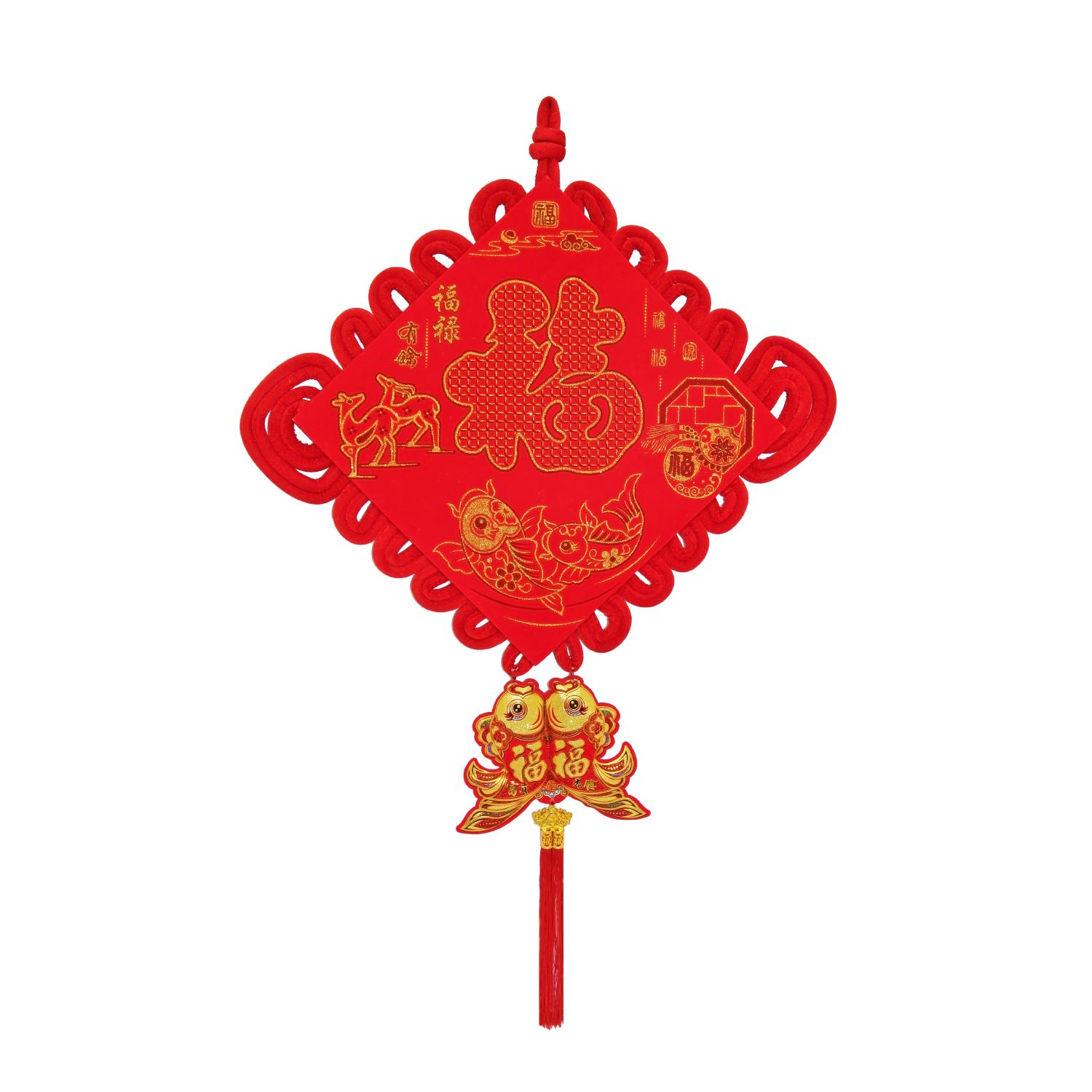 Китайский узел ромб красный рыбки 83х130см, Достаток