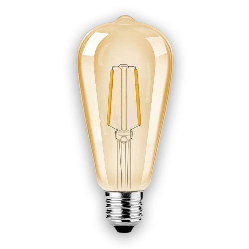 Светодиодная лампа стандарта ST64 с темным стеклом. Подходит для патрона стандарта E27 W2 с теплым свечением 2200K. Применяется преимущественно в гостиных, залах ресторанов и столовых. Удачно имитирует винтажный стиль и при этом отличается минимальным энергопотреблением в 2 Вт. Срок службы превышает 25 000 ч.