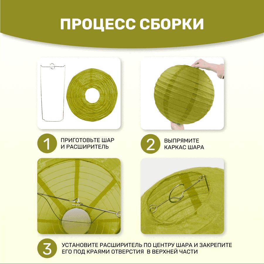 Комплект подвесные фонарики 30 см х 8 шт, фисташковый
