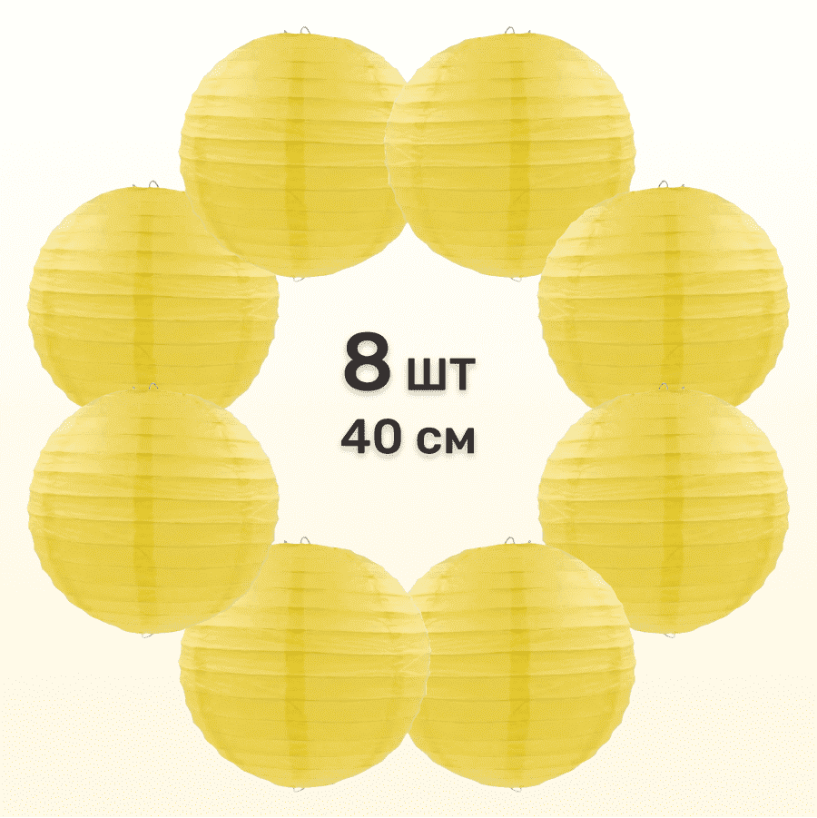 Комплект подвесные фонарики 40 см х 8 шт, желтый