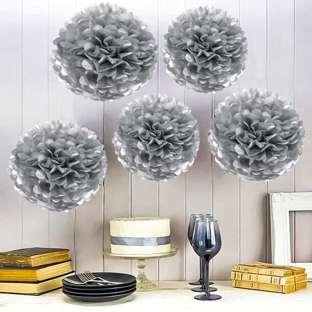 Помпон из бумаги 45 см серебро