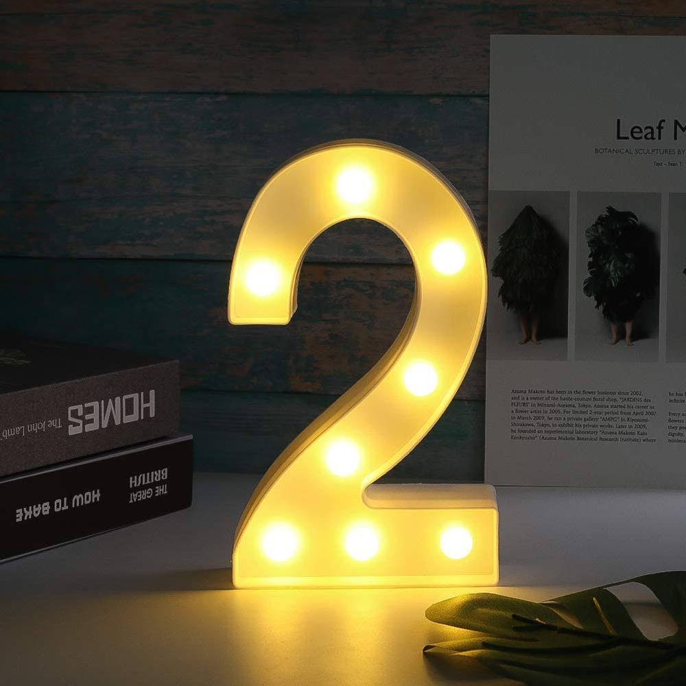 Цифра 2 светодиодная 21 см, от батареек , теплый белый
