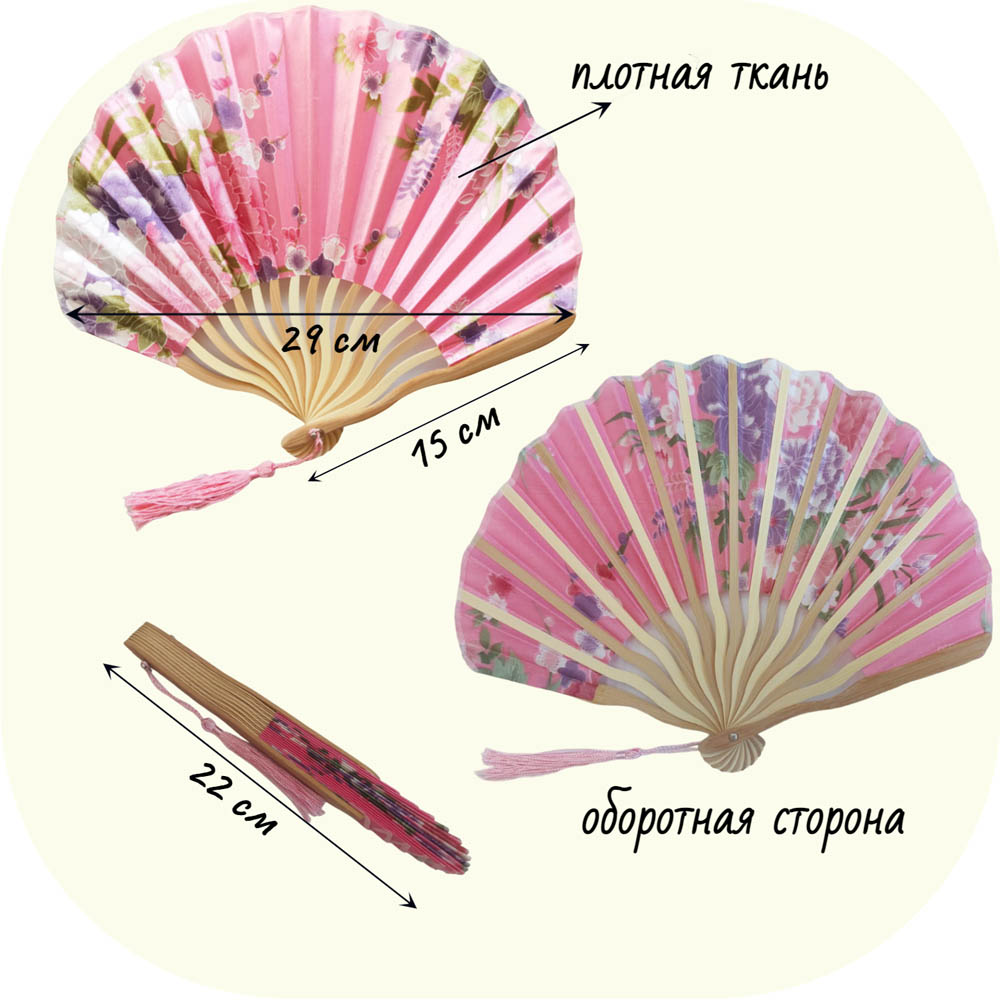 Веера тканевые с цветочным узором круглые 29х15см