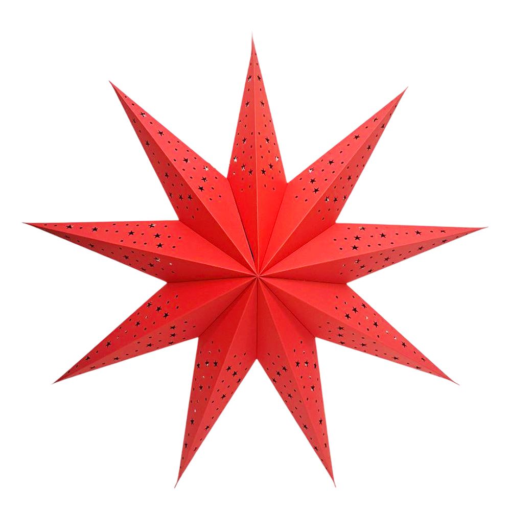 Звезда девятиконечная диаметром 75 см, изготовлена из картона с перфорацией в виде точек и мелких звезд.